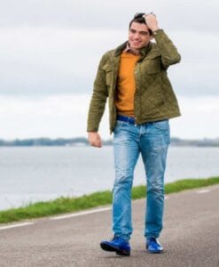 ‘Schoenen betekenen heel veel voor mij. Ik ga daar behoorlijk ver in. Zo draag ik op dit moment blauwe Van Bommels die erg aanwezig zijn en waar je niet om heen kunt. Die schoenen zijn voor mij een deel van mijn presentatie en laten zien waar ik goed in ben, namelijk het ontwerpen en vormgeven van mooie dingen. Ik pas zelf zo mogelijk de nieuwste ambachtelijke technieken toe. Deze blauwe schoenen zijn bijvoorbeeld met een lazer cutter gemaakt, een machine die licht zó bundelt dat je in materiaal tot 1 cm diep kunt snijden. Ik heb de toepassingsmogelijkheden van deze machine leren kennen.